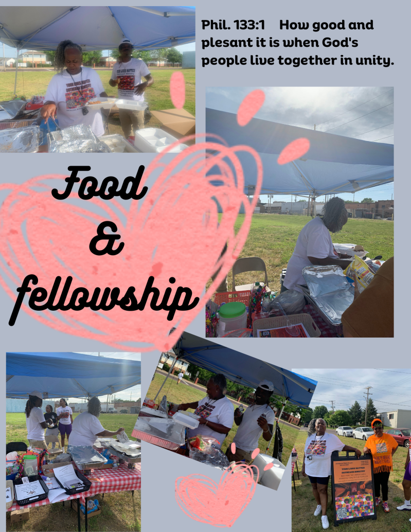 Our events include "Dinner Church" held every Tuesday at the South Side Community Center. Here we prepare home cooked meals for the neighborhood and provide hope and fellowship with those in our community.